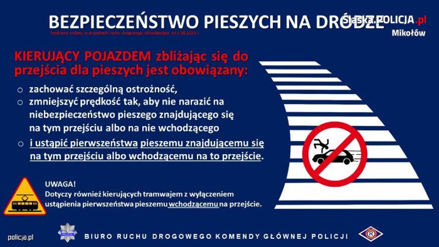 Po raz kolejny Policja apeluje do kierowców i pieszych: tylko przestrzeganie przepisów ruchu drogowego, w połączeniu z rozsądkiem i rozwagą, może ustrzec przed kalectwem czy utratą życia. Odpowiedzialność za bezpieczeństwo spoczywa na wszystkich użytkownikach dróg! Należy też pamiętać o tym, że fakt korzystania z oznakowanego przejścia nie upoważnia pieszego do wchodzenia na jezdnię bez upewnienia się, czy nie spowoduje to zagrożenia bezpieczeństwa w ruchu drogowym, a przede wszystkim dla jego życia i zdrowia. Przechodzień musi wykazać się rozsądkiem, ostrożnością oraz wyobraźnią, ponieważ w konfrontacji z samochodem nie ma szans.