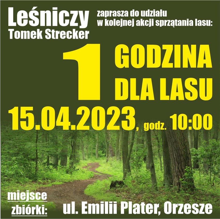 Leśniczy Tomek Strecker zaprasza wszystkich chętnych mieszkańców Orzesza do udziału w akcji sprzątania lasu pn. “1 Godzina Dla Lasu”.