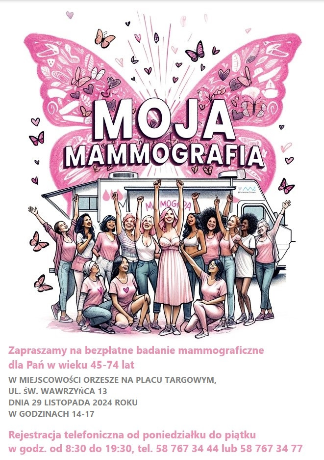 Badania odbędą się 29 listopada 2024r. (w godz. 14.00-17.00) oraz 6 grudnia na Targowisku Miejskim Orzesze (ul. św. Wawrzyńca 13). Rejestracja pod nr (58) 767 34 44 lub (58) 767 34 77.