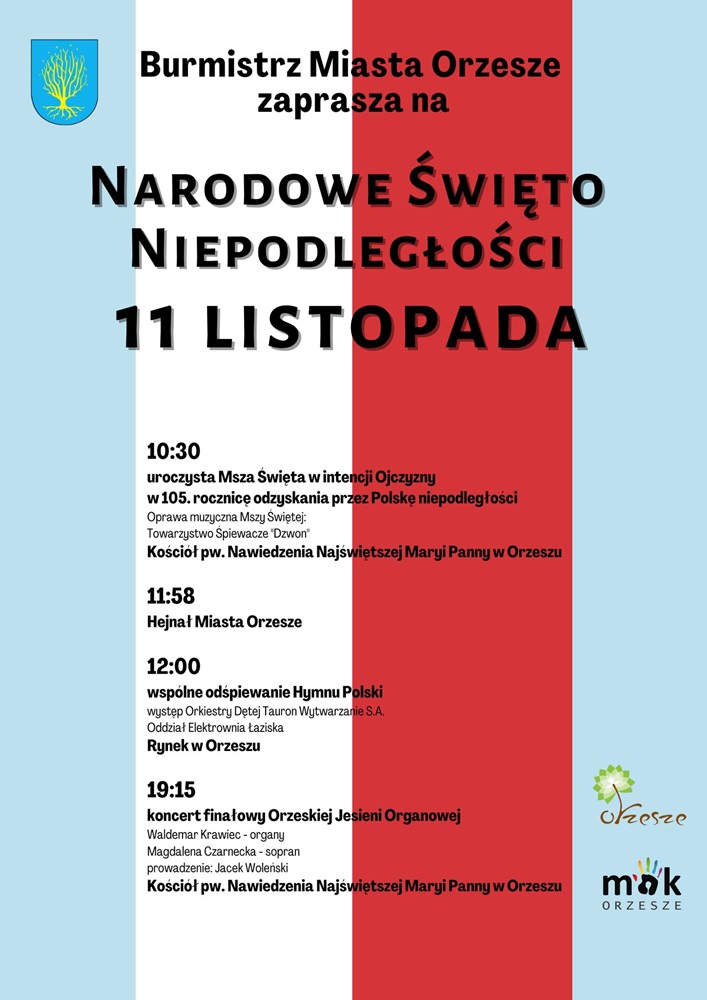 Burmistrz Miasta Orzesze zaprasza na obchody Narodowego Święta Niepodległości