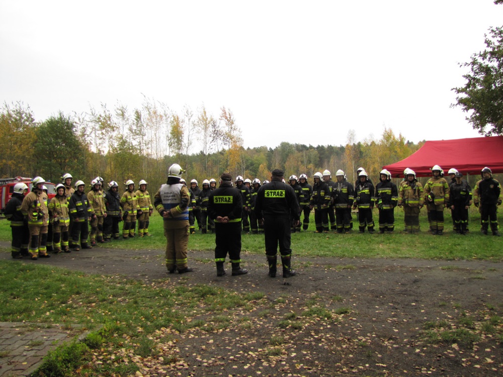 Teren Strzelnicy Myśliwskiej Koła Łowieckiego Hubertus w Orzeszu posłużył w sobotę za miejsce do przeprowadzenia ćwiczeń jednostek OSP z Orzesza. Podczas odprawy strażacy zostali poinformowani o scenariuszu ćwiczeń.