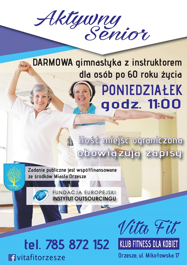 Miasto Orzesze oraz Fundacja Europejski Instytut Outsourcingu zapraszają mieszkańców Orzesza po 60. roku życia na bezpłatne zajęcia gimnastyczne z instruktorem.