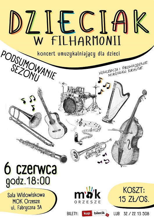 Miejski Ośrodek Kultury w Orzeszu zaprasza wszystkie dzieci na ostatnie w tym sezonie spotkanie z cyklu „Dzieciak w filharmonii”. To wyjątkowe wydarzenie pełne dźwięków, radości i wspólnej zabawy.