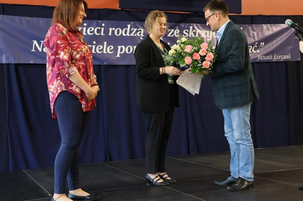 Z okazji Dnia Edukacji Narodowej wręczono kwiaty Agnieszce Siedlok, dyrektor SP2, oraz Katarzynie Dworaczek-Gorzawskiej, zastępcy dyrektora. Głos zabrała także Elżbieta Goralczyk, przewodnicząca Orzeskiej Rady Seniorów.