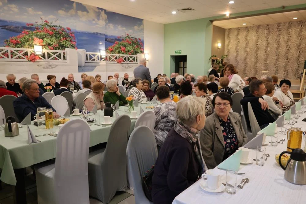 Po mszy świętej seniorzy udali się do Gospody Myśliwskiej, gdzie czekały na nich smaczne potrawy oraz słodki poczęstunek. Spotkanie przy stole sprzyjało rozmowom i integracji, a atmosfera pełna radości i żartów sprzyjała wspólnemu świętowaniu.