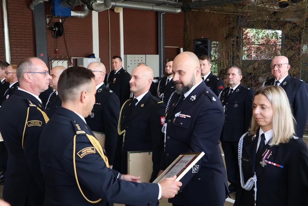 Podczas uroczystości wręczono odznaczenia oraz awanse na wyższe stopnie służbowe. To szczególna chwila docenienia zaangażowania i zasług strażaków oraz współpracowników.