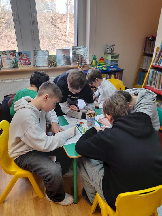 Na zakończenie spotkania uczniowie mieli okazję zmierzyć się z literacką wykreślanką, której tematyka związana była z książkami i postaciami literackimi. To świetna okazja do zabawy, rozwijania wyobraźni i pogłębiania wiedzy o literaturze.