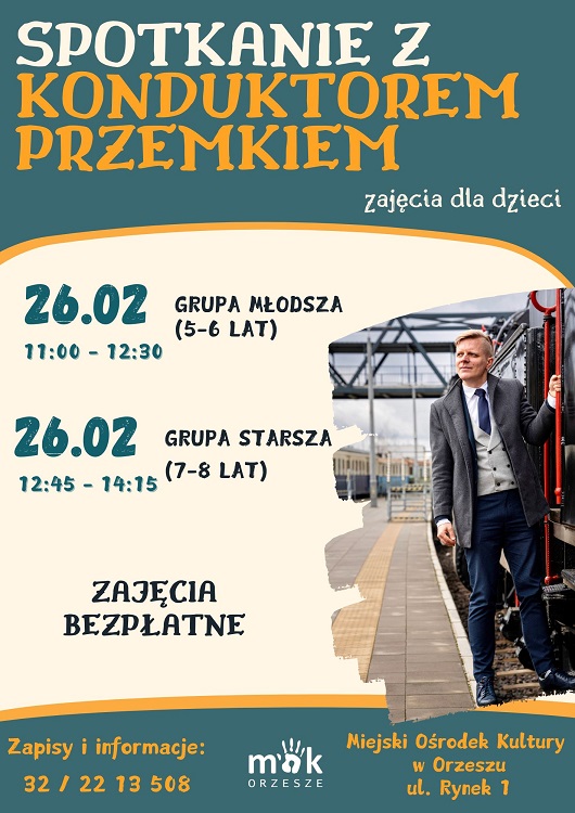 Najmłodsi, którzy pasjonują się koleją, będą mieli niepowtarzalną okazję spotkać się z Konduktorem Przemkiem! Już 26 lutego w Miejskim Ośrodku Kultury odbędzie się wyjątkowe wydarzenie, które łączy wiedzę o kolejnictwie z dobrą zabawą. Konduktor Przemek poprowadzi spotkanie, podczas którego uczestnicy będą mogli poznać tajniki pracy kolejarzy i historii polskiej kolei. Zajęcia przeznaczone są dla dzieci w dwóch grupach wiekowych, co pozwoli na indywidualne dostosowanie tematyki do wieku uczestników.