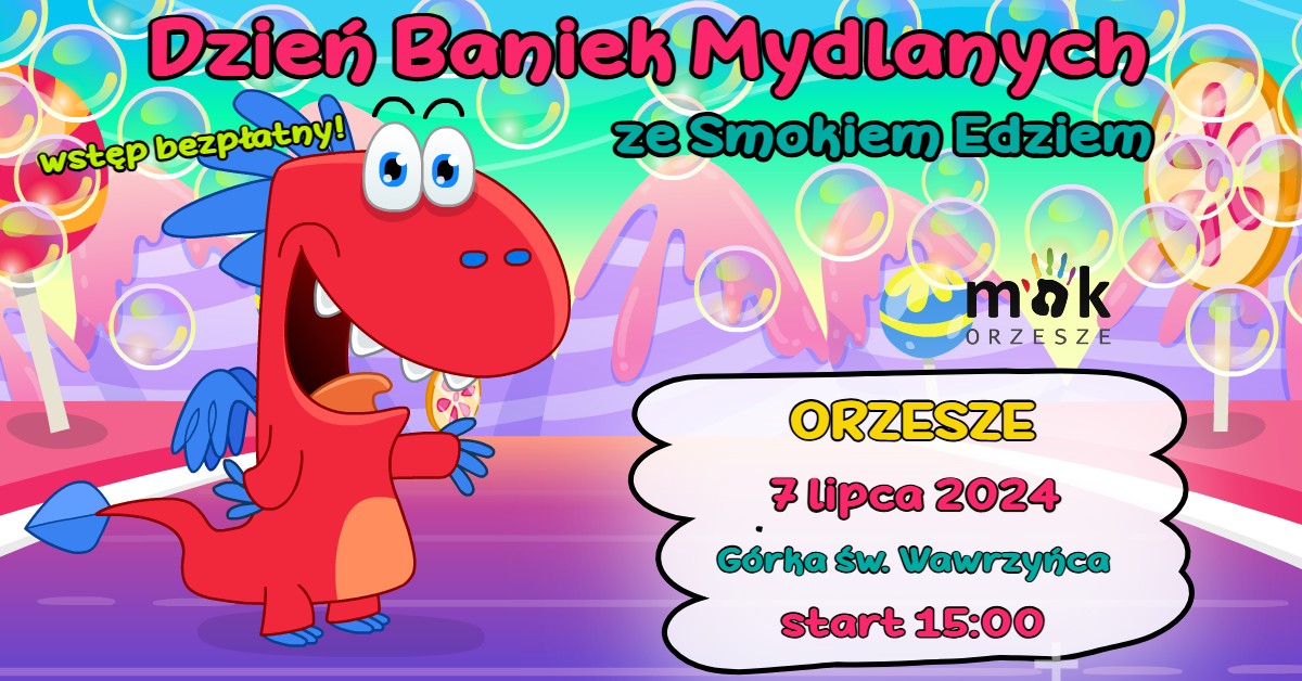 Już w najbliższą niedzielę, Orzesze zamieni się w kolorowy świat fantazji podczas Dnia Kolorów Orzesze’24 oraz Dnia Baniek Mydlanych ze Smokiem Edziem.