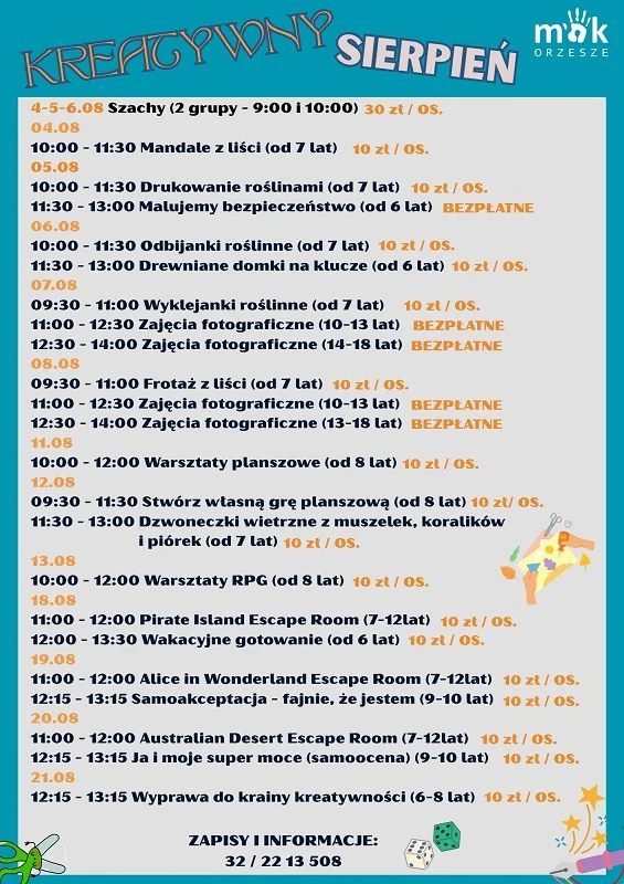 Kreatywny sierpień w MOK Orzesze: Zajęcia dla dzieci i młodzieży!