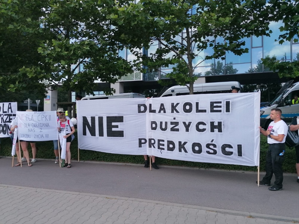 Do Warszawy przyjechali mieszkańcy: Katowic, Mikołowa, Orzesza, Czerwionki Leszczyny, Łodzi, Brzezin, Wiączynia, Rzeszowa, Jasionki, Zamościa, Krasnegostawu oraz mieszkańcy gmin: Jaktorów, Międzyborów, Żyrardów, Baranów, Teresin i Wiskitki – informują organizatorzy protestu. Od godz. 16 do 18 protestowali pod siedzibą CPK, która mieści się przy al. Jerozolimskich 142 b.