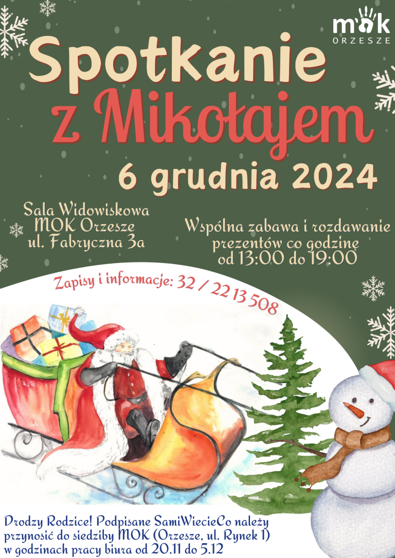 Zapisy i dodatkowe informacje u elfów Mikołaja, pod numerem: 32 / 22 13 508.
