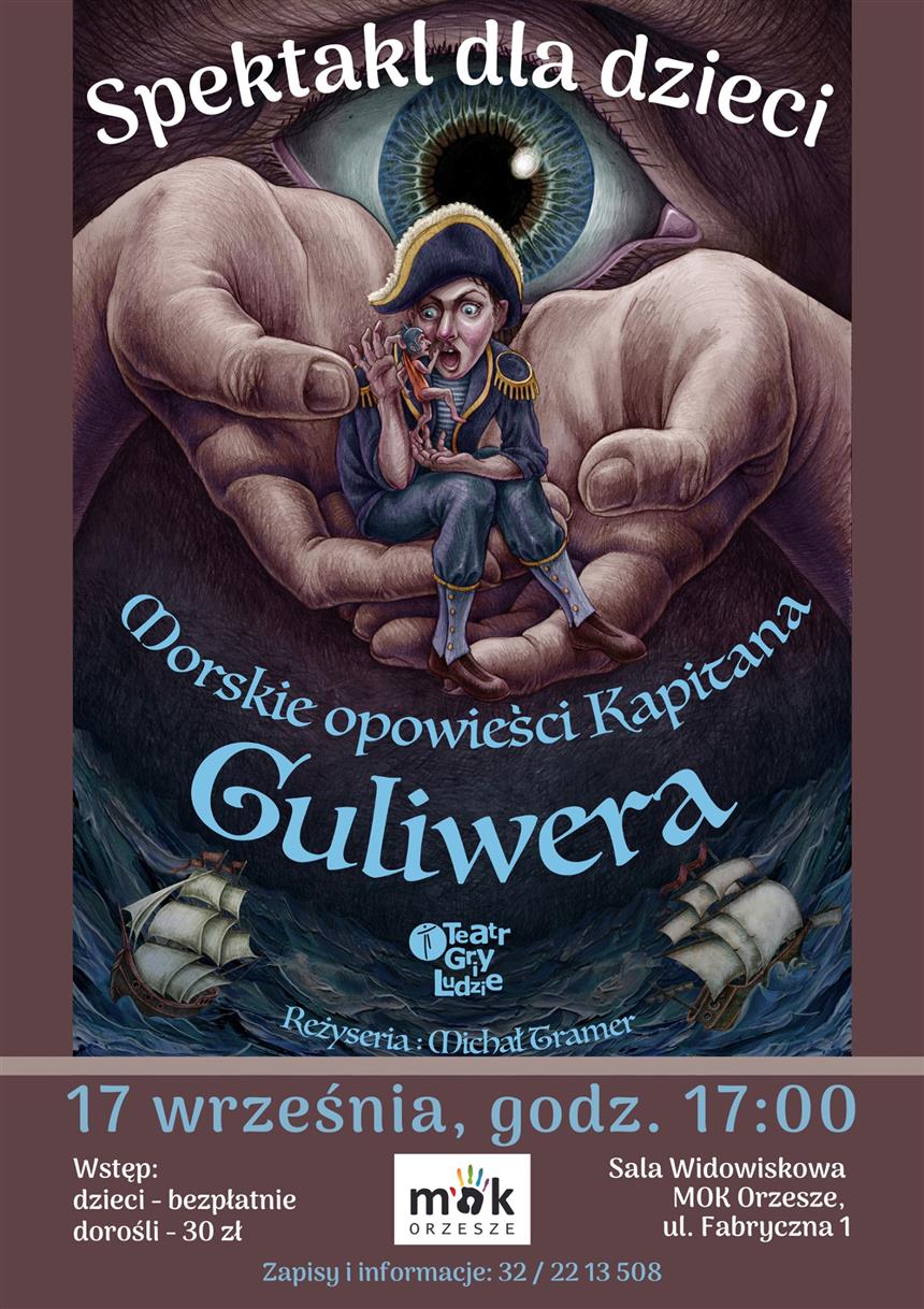 Już 17 września o godz. 17:00 na Sali Widowiskowej MOK spotkamy się i ugościmy świetny Teatr Gry i Ludzie ze spektaklem pt. “Morskie opowieści Kapitana Guliwera”!