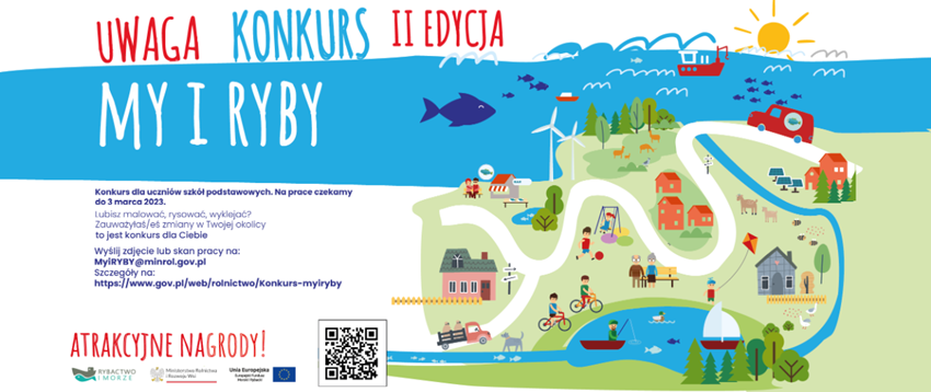 W imieniu Ministerstwa Rolnictwa i Rozwoju Wsi zachęca się do udziału w konkursie plastycznym dla uczniów szkół podstawowych pod nazwą “My i RYBY – jak Europejski Fundusz Morski i Rybacki zmienił otoczenie wokół nas”.