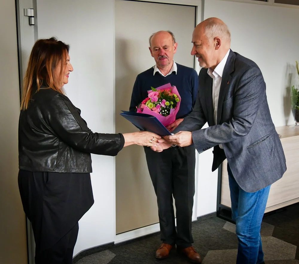 Starosta Mikołowski Mirosław Duży oraz członkowie Zarządu Powiatu Mikołowskiego pogratulowali pani Joannie tego wspaniałego osiągnięcia i podarowali jej dyplom oraz kwiaty. Podkreślili, że nagroda ta jest wyrazem uznania dla jej pracy na rzecz podopiecznych Domu Pomocy Społecznej w Orzeszu oraz dla zawodu opiekuna, który jest tak ważny i potrzebny w społeczeństwie.