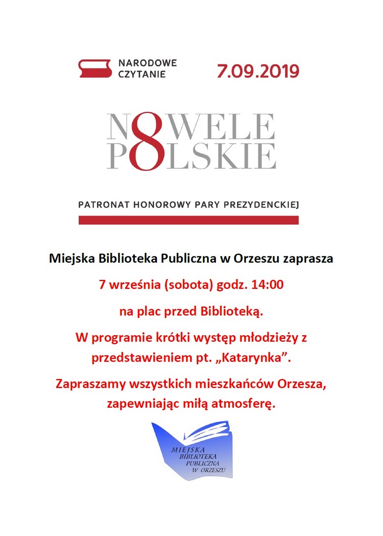 Miejska Biblioteka Publiczna w Orzeszu zaprasza na Narodowe czytanie: “NOWELE POLSKIE”.