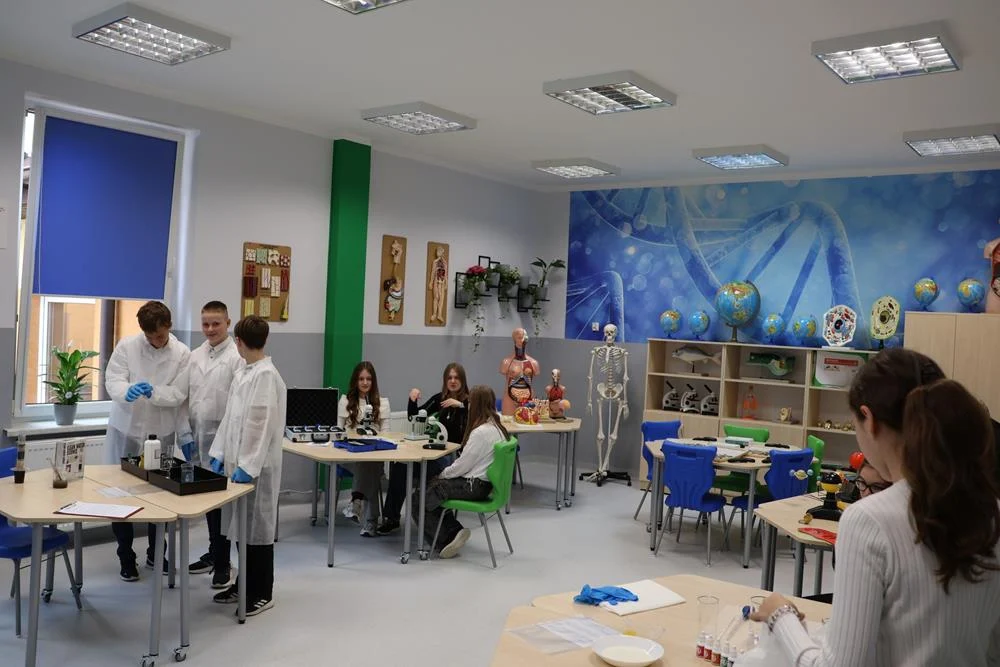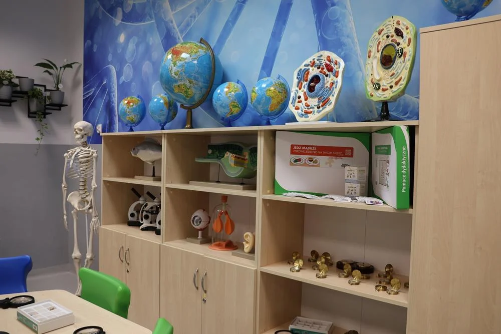 Zielona Pracownia to przestrzeń stworzona z myślą o młodych uczniach, którzy chcą zgłębiać tajniki przyrody i nauk ścisłych. Pracownia została wyposażona w nowoczesne meble, pomoce dydaktyczne takie jak mikroskopy, modele anatomiczne czy zestawy chemiczne, a także sprzęt multimedialny, w tym laptop oraz monitor interaktywny. Dzięki tym innowacyjnym rozwiązaniom uczniowie będą mogli nie tylko obserwować, ale także samodzielnie przeprowadzać doświadczenia oraz zgłębiać prawa natury w praktyce.