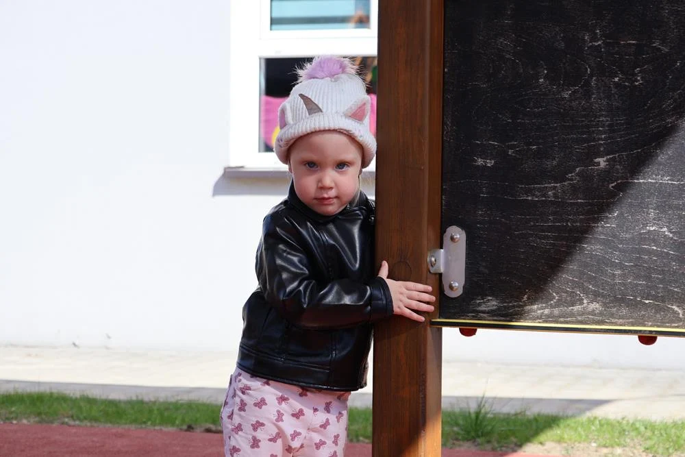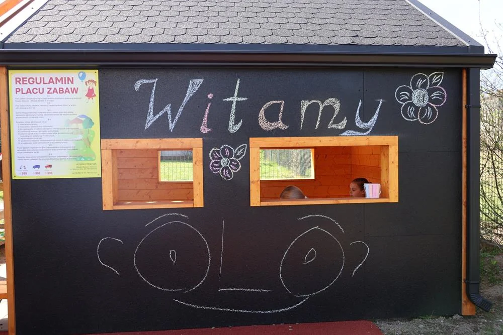 Powstała także altanka z ławkami i stolikami, której ściany pokryto farbą magnetyczno-tablicową. Dzięki temu miejsce może służyć nie tylko zabawie, ale również rozwijaniu kreatywności dzieci.