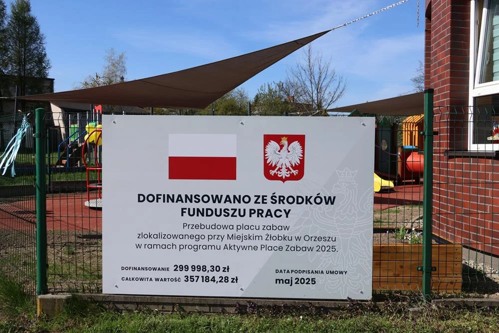 W Orzeszu uroczyście otwarto przebudowany plac zabaw przy Miejskim Żłobku. Inwestycja została zrealizowana dzięki dofinansowaniu w wysokości 299 998,30 zł, a jej łączna wartość wyniosła 357 184,28 zł. Nowa przestrzeń została wyposażona w dodatkowe urządzenia zabawowe, strefy odpoczynku i elementy wspierające rozwój najmłodszych.
