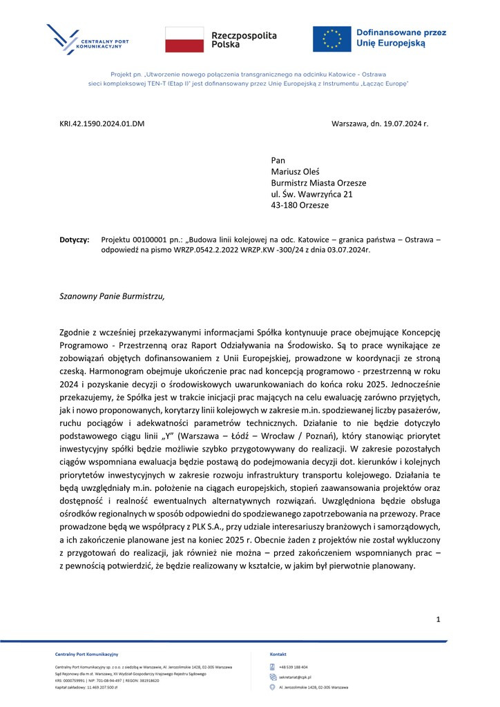 Publikujemy pismo Centralnego Portu Komunikacyjnego, które jest odpowiedzią na pytania jakie Urząd Miejski Orzesze wysłał do CPK po konferencji prasowej premiera Donalda Tuska, a która dotyczyła przyszłości CPK i KDP.
