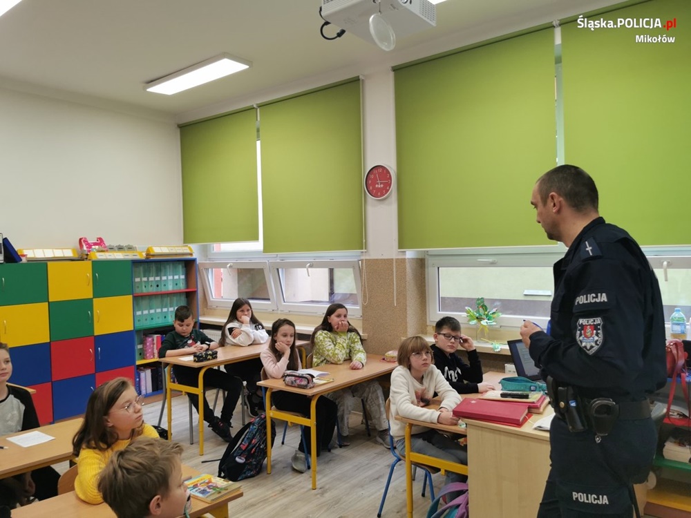 Dzielnicowy z orzeskiego komisariatu wraz z policyjnym profilaktykiem spotkali się z uczniami Szkoły Podstawowej nr 8 w Orzeszu, by porozmawiać o konsekwencjach agresji i hejtu wobec swoich rówieśników. Mundurowi wyjaśnili zasady odpowiedzialności prawnej, wskazując jednocześnie na bezpośrednie skutki przemocy wśród dzieci i młodzieży.