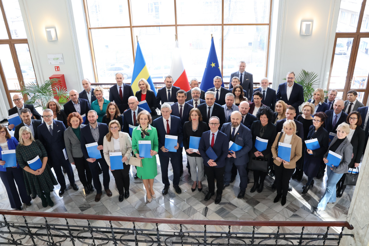 Mariusz Oleś, burmistrz Orzesza i Tomasz Szier, zastępca burmistrza odebrali dzisiaj w Urzędzie Marszałkowskim Województwa Śląskiego w Katowicach list gratulacyjny za udział w Programie Funduszy Europejskich dla Śląskiego na lata 2021-2027 dla zadania „Montaż instalacji fotowoltaicznych oraz pomp ciepła w jednostkach oświatowych z terenu Miasta Orzesze”.