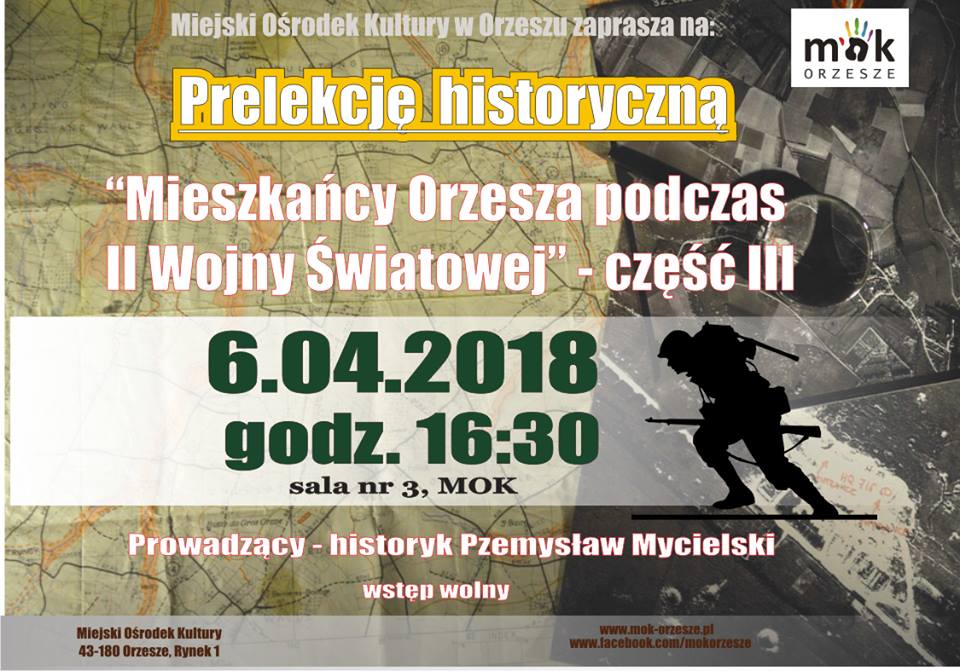 Serdecznie zapraszamy wszystkich pasjonatów historii i nie tylko na kolejną prelekcje historyczną – dot. dalszych losów mieszkańców Orzesza podczas II Wojny Światowej.