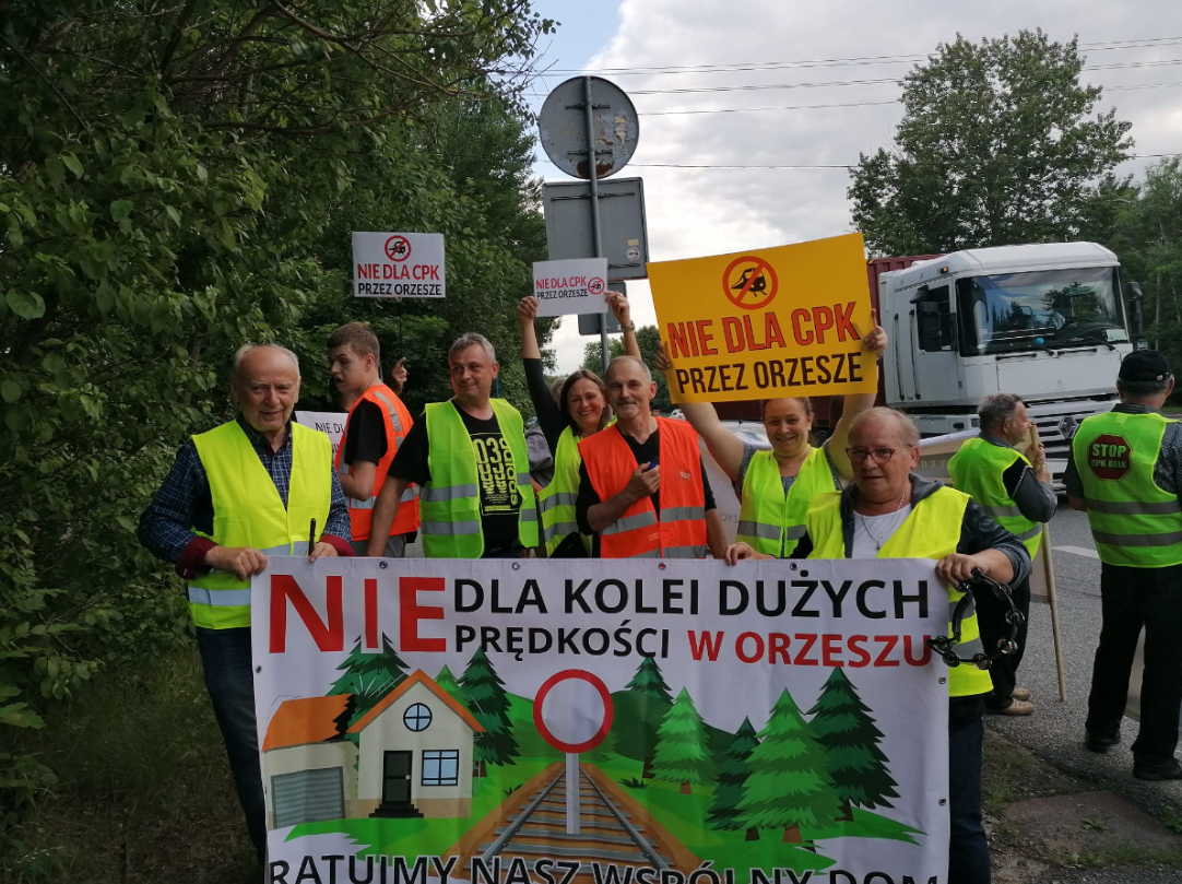 Mieszkańcy Orzesza sprzeciwiają się budowie kolei dużych prędkości do CPK, argumentując, że wiąże się to z wyburzaniem domów, firm i niszczeniem przyrody.