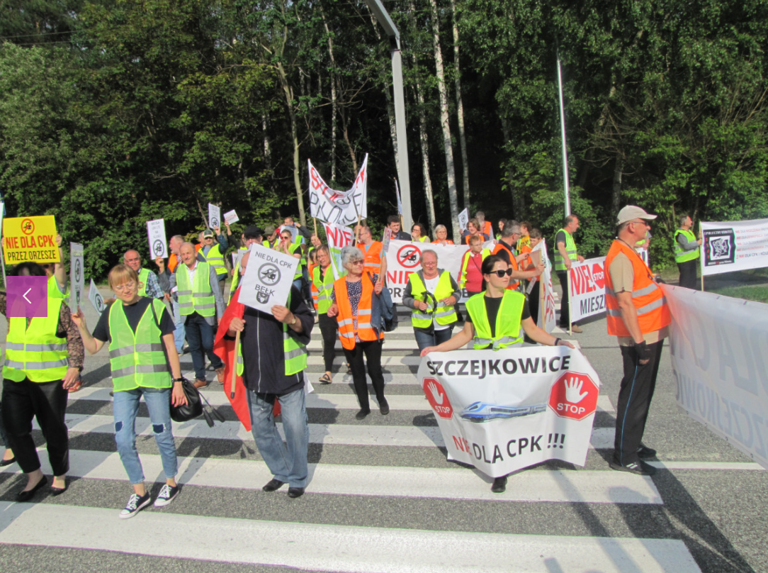 Protest przeciwko budowie kolei dużych prędkości do CPK