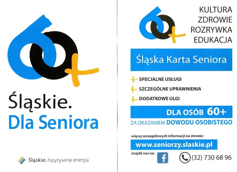 Samorząd Województwa Śląśkiego zaprasza przedsiębiorców i inne zainteresowane podmioty do przystąpienia w charakterze partnera do projektu Śląskie dla Seniora – Śląska Karta Seniora. Udział w projekcie wiąże się z nieodpłatnym przyznaniem osobom starszym tj. w wieku 60 lat lub więcej specjalnej oferty usług i/lub ulg i uprawnień. Dokumentem legitymacyjnym jest ważny dowód osobisty potwierdzający możliwość skorzystania z projektu.