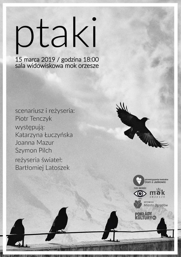 Zapraszamy na najnowszą premierę z Domu z Jaśkowic – “Ptaki”, która odbędzie się 15 marca, o godz. 18;00 w sali widowiskowej Miejskiego Ośrodka Kultury w Orzeszu – Jaśkowicach.
