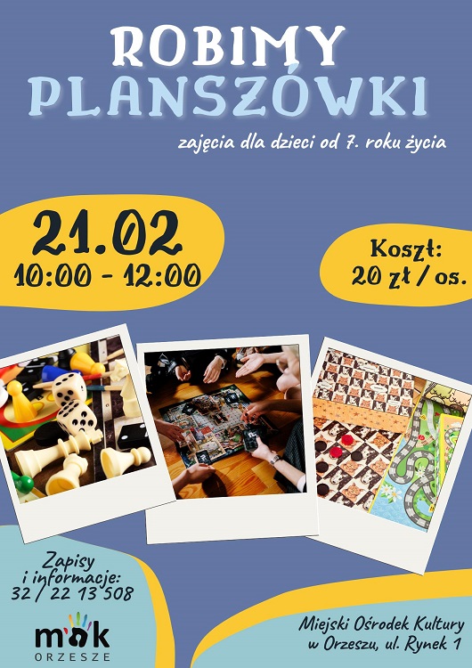 Miejski Ośrodek Kultury w Orzeszu zaprasza dzieci od 7. roku życia na wyjątkowe warsztaty tworzenia gier planszowych. To świetna okazja, by poznać proces powstawania planszówek – od pierwszego pomysłu, aż po testowanie gotowej gry.