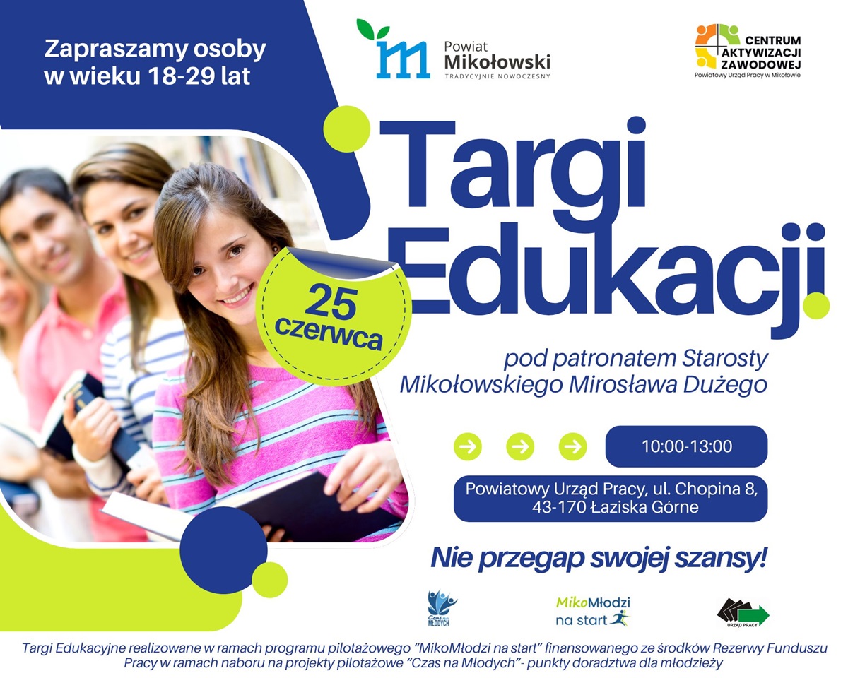 Wydarzenie realizowane jest w ramach projektu pilotażowego “MikoMłodzi na start”, finansowanego ze środków rezerwy Funduszu Pracy w ramach naboru na projekty pilotażowe “Czas na Młodych – punkty doradztwa dla młodzieży”, które ma na celu poszerzyć wiedzę na temat możliwości kształcenia, rozwoju zawodowego oraz dalszej edukacji.