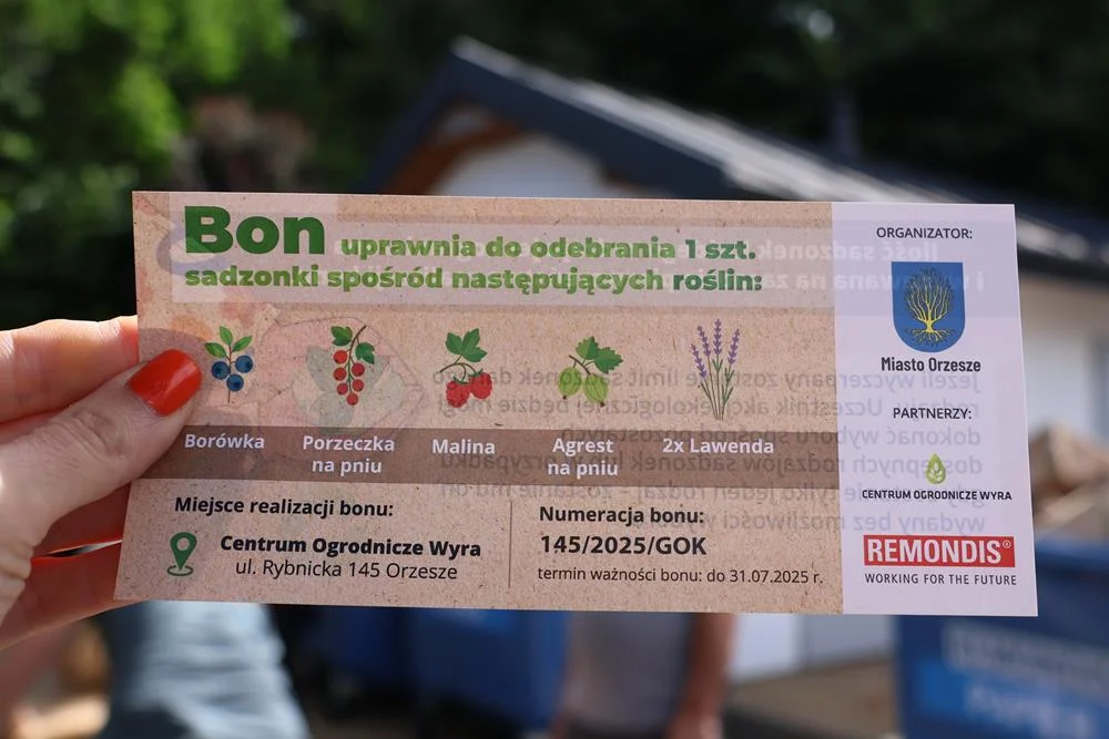 W ramach drugiej edycji ekologicznej akcji wymiany odpadów na sadzonki mieszkańcy mogli odebrać bony uprawniające do odbioru jednej z roślin: borówki, porzeczki na pniu, agrestu na pniu, maliny lub dwóch sadzonek lawendy. Bony można realizować do 31 lipca w Centrum Ogrodniczym Wyra przy ul. Rybnickiej 145.