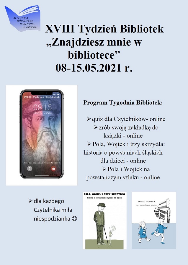 Miejska Biblioteka Publiczna w Orzeszu zaprasza na tegoroczny Tydzień Bibliotek pod hasłem “Znajdziesz mnie w bibliotece”.