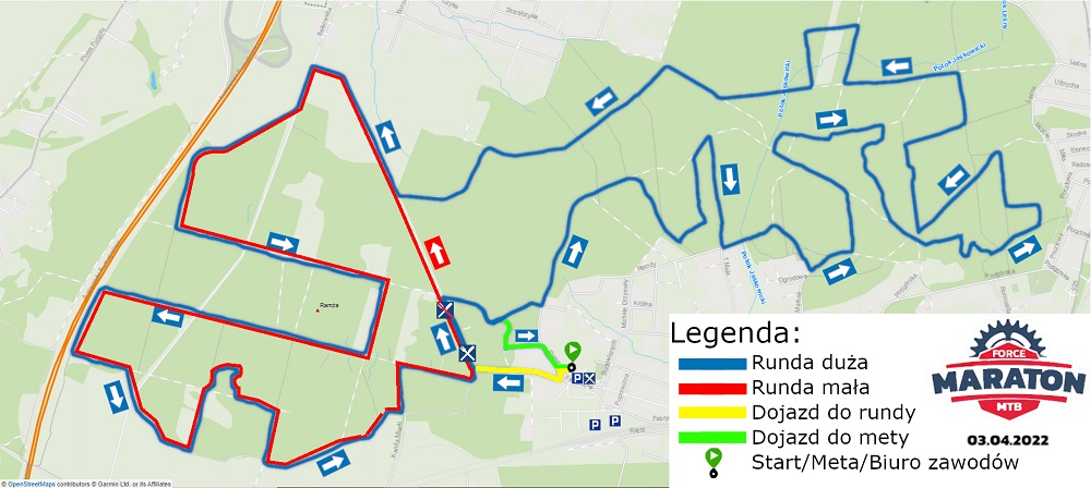 - Mini maraton – 36 km (1 pętla mała + 1 pętla duża)