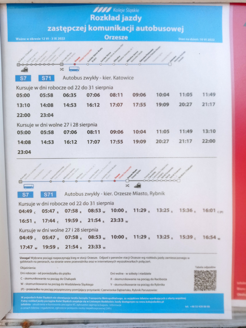 Poniżej podajemy Rozkład jazdy autobusowej komunikacji zastępczej z Orzesza do Katowic i z Orzesza do Rybnika.