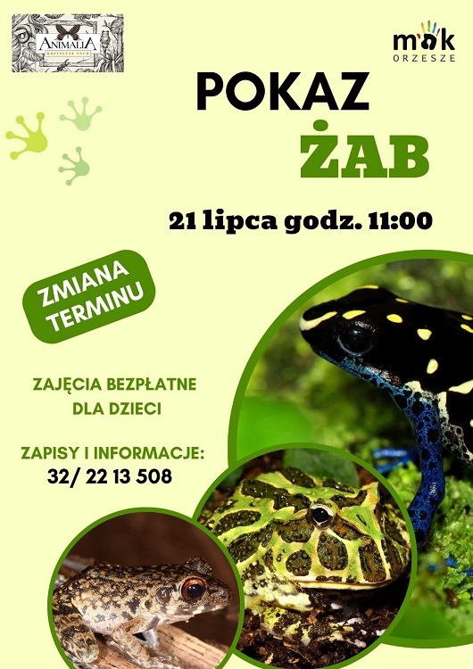 Miejski Ośrodek Kultury w Orzeszu zaprasza dzieci na fascynujący pokaz żab, który odbędzie się 21 lipca o godz. 11:00. Wydarzenie poprowadzi Krzysztof Pach z Animalia, który wprowadzi uczestników w niezwykły świat tych wyjątkowych zwierząt.