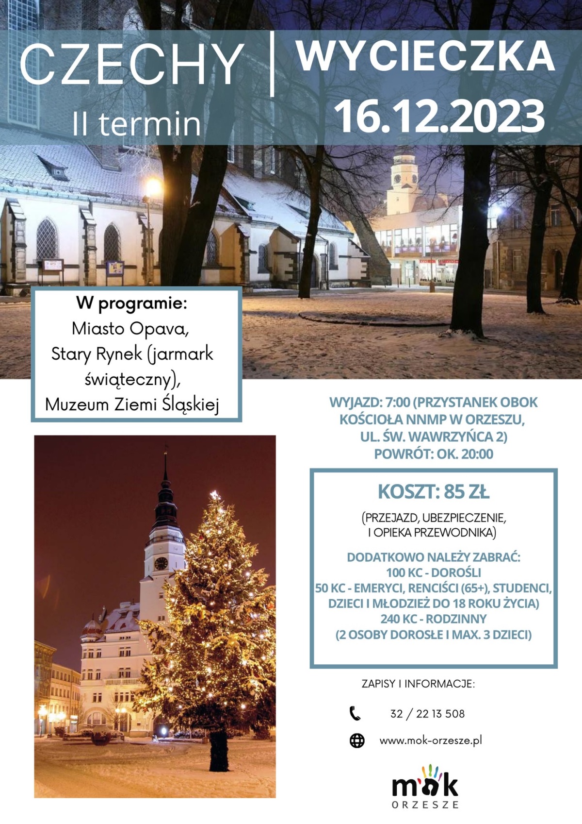 Wyjazd zaplanowano na 16 grudnia 2023 roku. Zbiórka o godzinie 7:00 przy kościele NNMP w Orzeszu