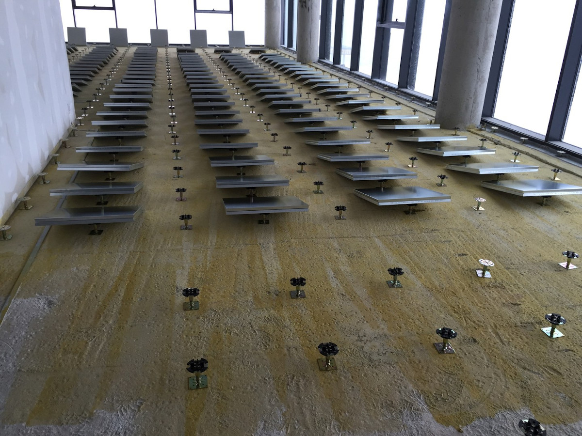 Podstawowym elementem konstrukcji podłogi podniesionej jest system nośny, składający się z elementów poziomych i pionowych, takich jak: