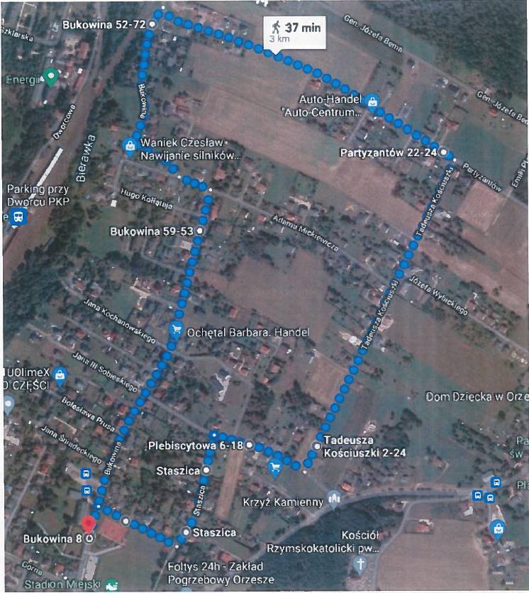 - Skrócenie trasy przejazdu kursu o godz. 12:01 w relacji Mikołów Dworzec – Orzesze Szkoła do przystanku Orzesze Kościół (brak obsługi przystanków Orzesze Urząd Miejski i Orzesze Szkoła)