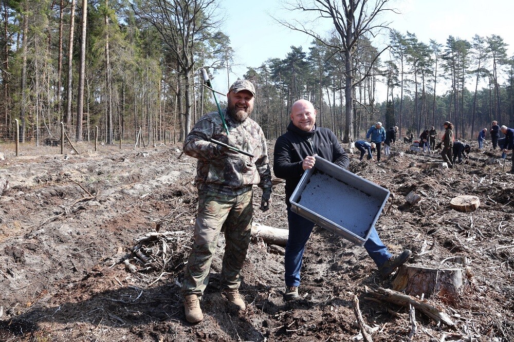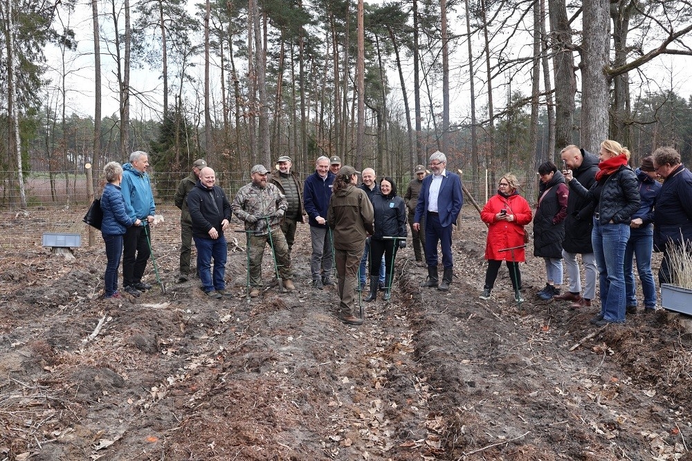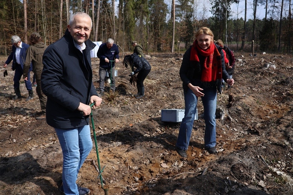 Zanim przystąpili do sadzenia drzew, uczestnicy mieli okazję zobaczyć, jak powstają sadzonki w szkółce kontenerowej w Orzeszu Królówce. To właśnie tutaj produkowane są 2 miliony sadzonek drzew rocznie, w tym dębów, sosen i buków. Obiekt stanowi ważny punkt w dbaniu o przyszłość lasów w regionie.