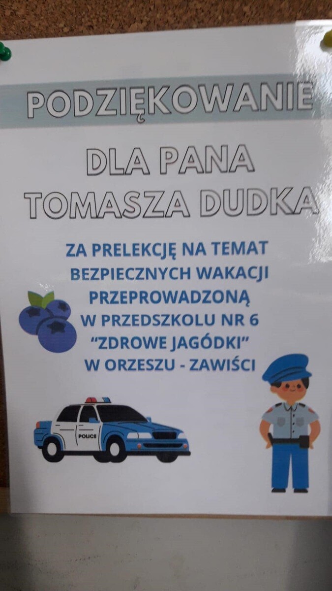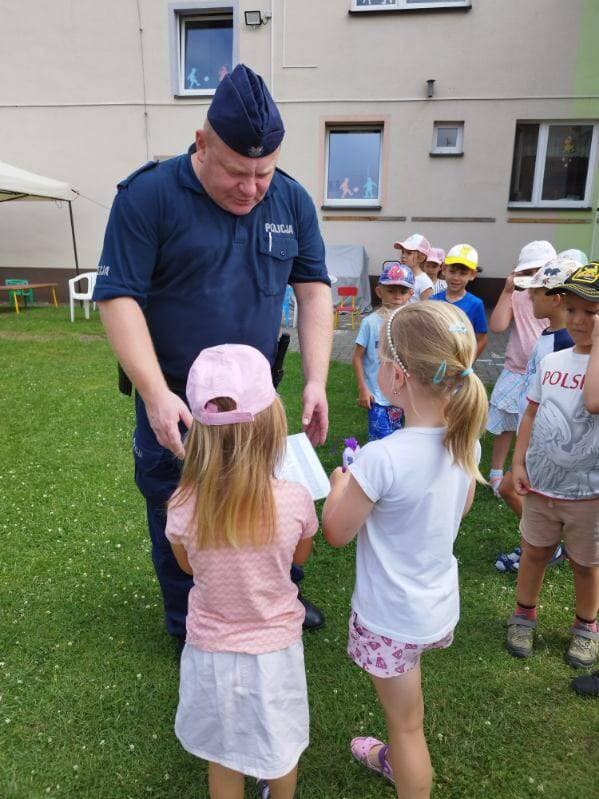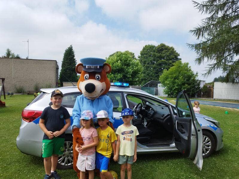 Jednak nie zabrakło też momentów poważnych – dzielnicowy przekazał dzieciom istotne zasady bezpieczeństwa, takie jak zachowanie ostrożności na drodze, podczas korzystania z kąpielisk i placów zabaw, a także w kontaktach z nieznajomymi.