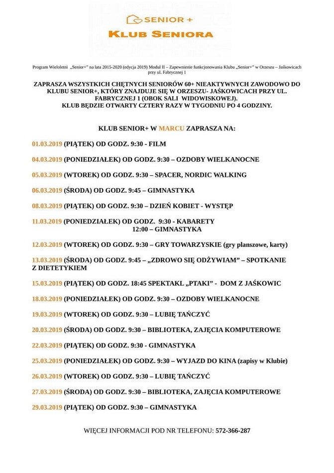Dodatkowe informacje na temat zajęć i zapisów do klubu można uzyskać telefonicznie 572 - 366 - 287