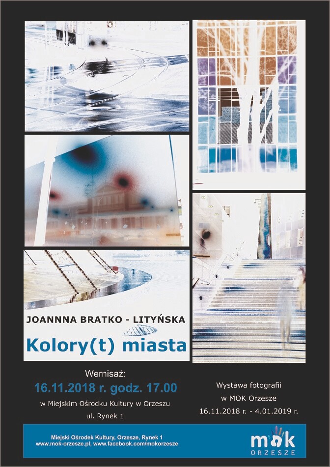 16 listopada o godz. 17:00, Miejski Ośrodek Kultury w Orzeszu serdecznie zaprasza na wernisaż fotografii Joanny Bratko – Lityńskiej, pt. „Kolory(t) miasta”.