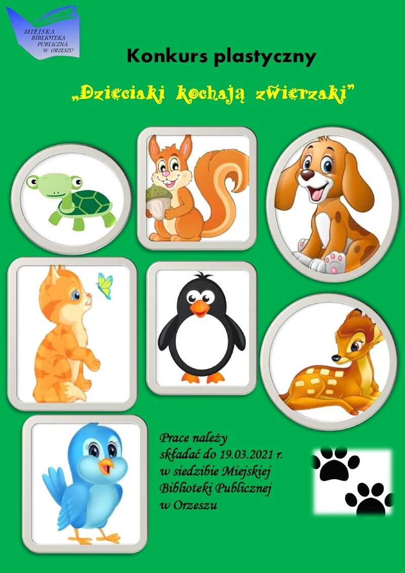 Miejska Biblioteka Publiczna w Orzeszu zaprasza do wzięcia udziału w konkursie plastycznym „Dzieciaki kochają zwierzaki”.