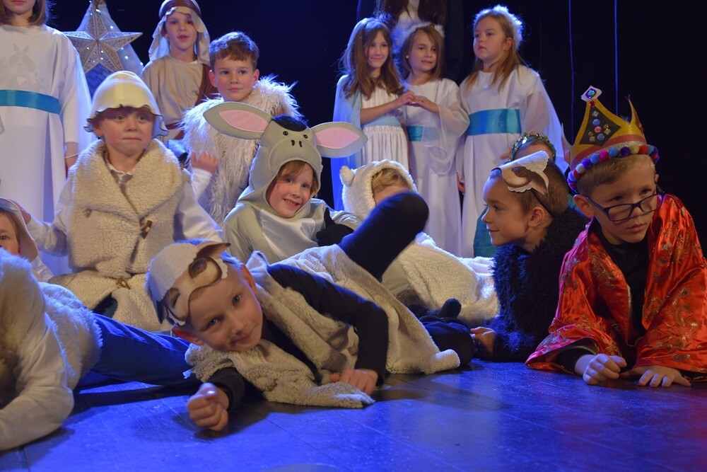 Po części oficjalnej wszyscy zgromadzeni podzielili się opłatkiem i złożyli sobie życzenia. Część artystyczną zapewniły Przedszkolaki z P 10 w Mokrem, które wystawiły jasełka.