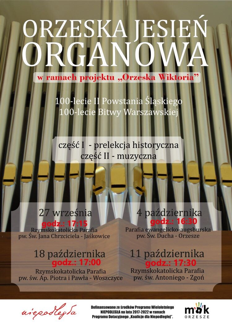 Orzeska Jesień Organowa to nowy cykl spotkań z muzyką i historią. Podczas 4 jesiennych wieczorów odbędą się spotkania w czterech różnych orzeskich kościołach, gdzie wysłuchamy utworów organowych poprzedzonych prelekcjami historycznymi.