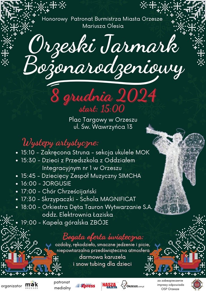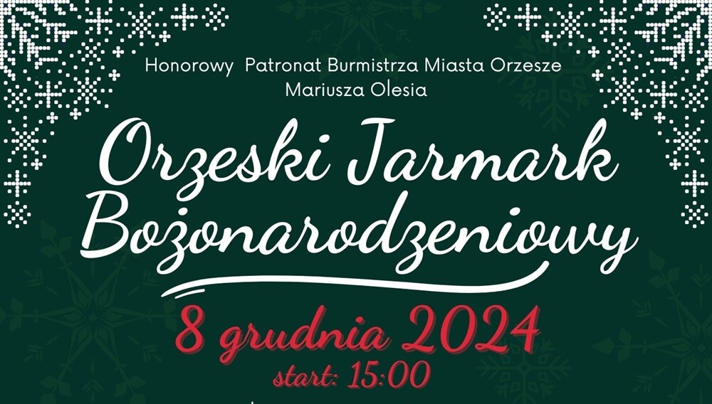 Orzeski Jarmark Bożonarodzeniowy odbędzie się pod honorowym patronatem Burmistrza Miasta Orzesze.