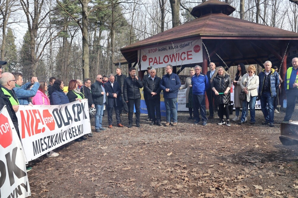 Protest przeciwko budowie kolei dużych prędkości do Centralnego Portu Komunikacyjnego odbył się w niedzielę w Palowicach. Wśród protestujących byli mieszkańcy Orzesza oraz burmistrz Mirosław Blaski.